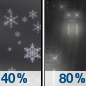 Temperature: 29°F Wind Speed: 5 mph Wind Direction: W Forecast: A chance of snow after 7am. Partly sunny, with a high near 29. Chance of precipitation is 40%. |