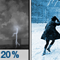 Temperature: 35°F Wind Speed: 15 mph Wind Direction: NW Forecast: A slight chance of showers and thunderstorms before 8pm. Partly cloudy, with a low around 35. Chance of precipitation is 20%. |