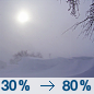 Temperature: 9°F Wind Speed: 7 mph Wind Direction: W Forecast: A chance of snow showers. Mostly cloudy, with a high near 9. Chance of precipitation is 30%. |