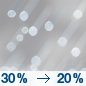Temperature: 33°F Wind Speed: 12 mph Wind Direction: S Forecast: A chance of snow. Mostly cloudy, with a high near 33. Chance of precipitation is 30%. |