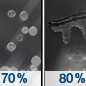 Temperature: 51°F Wind Speed: 5 to 10 mph Wind Direction: S Forecast: Freezing rain and rain before 9am, then a chance of rain showers between 9am and 2pm. Cloudy, with a high near 51. South wind 5 to 10 mph. Chance of precipitation is 80%. Little or no ice accumulation expected. |
