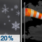 Temperature: 46°F Wind Speed: 5 mph Wind Direction: S Forecast: A slight chance of snow between 11am and 5pm. Cloudy, with a high near 46. South wind around 5 mph. Chance of precipitation is 20%. |
