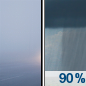 Temperature: 54°F Wind Speed: 9 to 13 mph Wind Direction: S Forecast: Rain likely. Mostly cloudy, with a high near 54. South wind 9 to 13 mph. Chance of precipitation is 70%. |