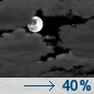 Temperature: 34°F Wind Speed: 5 to 9 mph Wind Direction: W Forecast: Mostly cloudy, with a low around 34. Chance of precipitation is 50%. |