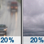 Forecast: A slight chance of rain. Mostly cloudy, with a low around 38. Chance of precipitation is 20%.