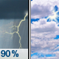 Temperature: 68°F Wind Speed: 5 to 10 mph Wind Direction: SW Forecast: Showers and thunderstorms before 10am. Mostly cloudy. High near 68, with temperatures falling to around 63 in the afternoon. Southwest wind 5 to 10 mph, with gusts as high as 25 mph. Chance of precipitation is 90%. New rainfall amounts between a quarter and half of an inch possible. |