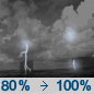Temperature: 76°F Wind Speed: 0 to 5 mph Wind Direction: NNW Forecast: Showers and thunderstorms likely. Mostly sunny, with a high near 76. Chance of precipitation is 60%. |