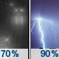 Temperature: 54°F Wind Speed: 8 to 12 mph Wind Direction: S Forecast: Rain between 8pm and 5am, then rain and a slight chance of thunderstorms. Mostly cloudy, with a low around 54. South wind 8 to 12 mph, with gusts as high as 28 mph. Chance of precipitation is 90%. New rainfall amounts between a quarter and half of an inch possible. |