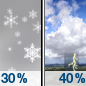 Temperature: 54°F Wind Speed: 1 to 9 mph Wind Direction: WSW Forecast: A chance of rain and snow showers before noon, then a chance of showers and thunderstorms. Partly sunny, with a high near 54. |