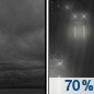 Temperature: 56°F Wind Speed: 12 mph Wind Direction: SW Forecast: Rain likely. Mostly cloudy, with a high near 56. Chance of precipitation is 70%. |