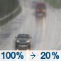 Temperature: 57°F Wind Speed: 1 to 6 mph Wind Direction: E Forecast: Rain likely after 10am. Cloudy, with a high near 57. East wind 1 to 6 mph. Chance of precipitation is 70%. |
