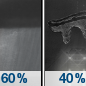 Temperature: 47°F Wind Speed: 0 mph Wind Direction: Forecast: A chance of rain showers. Mostly cloudy, with a low around 47. Chance of precipitation is 40%. |