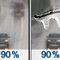 Temperature: 42°F Wind Speed: 10 mph Wind Direction: N Forecast: Rain before noon, then freezing rain and rain. Cloudy, with a high near 42. Chance of precipitation is 90%. Little or no ice accumulation expected. |