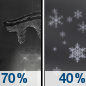 Temperature: 27°F Wind Speed: 15 to 20 mph Wind Direction: SW Forecast: A slight chance of freezing rain before 7pm, then rain likely between 7pm and midnight, then a chance of drizzle between midnight and 4am, then a slight chance of freezing drizzle and a slight chance of drizzle between 4am and 5am, then a slight chance of snow and a slight chance of freezing drizzle. Mostly cloudy. Low around 27, with temperatures rising to around 31 overnight. Southwest wind 15 to 20 mph, with gusts as high as 40 mph. Chance of precipitation is 70%. New rainfall amounts less than a tenth of an inch possible. |