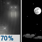 Temperature: 38°F Wind Speed: 6 to 13 mph Wind Direction: S Forecast: A chance of rain after 1am. Mostly cloudy, with a low around 38. Chance of precipitation is 30%.  |