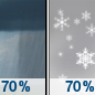 Temperature: 8°F Wind Speed: 5 mph Wind Direction: S Forecast: Snow showers likely. Mostly cloudy, with a low around 8. |
