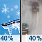 Temperature: 40°F Wind Speed: 9 mph Wind Direction: N Forecast: A slight chance of rain and snow after 7am. Partly sunny, with a high near 40. |