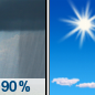 Temperature: 40°F Wind Speed: 6 to 12 mph Wind Direction: SW Forecast: Rain showers. Mostly cloudy, with a low around 40. Chance of precipitation is 90%. |