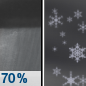 Temperature: 30°F Wind Speed: 18 mph Wind Direction: ENE Forecast: A chance of snow between 7pm and 1am, then rain and snow likely between 1am and 4am, then snow likely and a slight chance of sleet and a slight chance of freezing rain. Mostly cloudy, with a low around 30. Chance of precipitation is 70%. New snow accumulation of 3 to 5 inches possible. Little or no ice accumulation expected. |