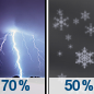 Temperature: 36°F Wind Speed: 5 to 10 mph Wind Direction: NE Forecast: Showers and thunderstorms likely before midnight, then a chance of rain and snow showers between midnight and 3am, then a chance of rain and snow showers. Cloudy, with a low around 36. |