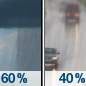 Temperature: 56°F Wind Speed: 5 to 8 mph Wind Direction: SW Forecast: Rain showers likely. Mostly cloudy. High near 56, with temperatures falling to around 53 in the afternoon. Southwest wind 5 to 8 mph. Chance of precipitation is 70%. |
