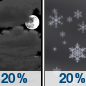 Temperature: 29°F Wind Speed: 13 mph Wind Direction: SW Forecast: A slight chance of snow showers after 1am. Mostly cloudy, with a low around 29. Southwest wind around 13 mph. Chance of precipitation is 20%. |