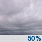 Temperature: 34°F Wind Speed: 6 to 9 mph Wind Direction: W Forecast: Mostly cloudy, with a low around 34. Chance of precipitation is 50%. |