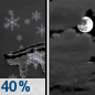 Temperature: 16°F Wind Speed: 5 mph Wind Direction: W Forecast: A chance of snow before 8pm, then a slight chance of snow and a slight chance of freezing rain between 8pm and 9pm. Mostly cloudy. Low around 16, with temperatures rising to around 21 overnight. West wind around 5 mph. Chance of precipitation is 40%. |