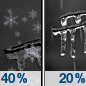 Temperature: 29°F Wind Speed: 0 to 5 mph Wind Direction: SW Forecast: A slight chance of snow between 8pm and 9pm, then a chance of freezing rain between 9pm and 1am. Mostly cloudy, with a low around 29. Southwest wind 0 to 5 mph. Chance of precipitation is 40%. New rainfall amounts less than a tenth of an inch possible. |