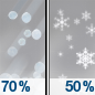 Temperature: 36°F Wind Speed: 9 to 13 mph Wind Direction: N Forecast: Sleet likely and rain likely before 11am, then a chance of snow between 11am and 2pm, then scattered rain showers. Cloudy, with a high near 36. North wind 9 to 13 mph. Chance of precipitation is 70%. New snow accumulation of less than half an inch possible. |