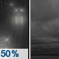 Temperature: 37°F Wind Speed: 0 to 5 mph Wind Direction: S Forecast: A chance of rain before midnight. Cloudy, with a low around 37. Chance of precipitation is 50%. |