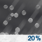 Temperature: 14°F Wind Speed: 5 mph Wind Direction: NW Forecast: A slight chance of snow. Mostly cloudy, with a low around 14. Chance of precipitation is 20%. |