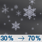 Temperature: 30°F Wind Speed: 10 mph Wind Direction: NW Forecast: A chance of snow. Partly sunny, with a high near 30. Chance of precipitation is 40%. |