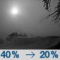 Temperature: 40°F Wind Speed: 6 to 9 mph Wind Direction: W Forecast: Mostly cloudy, with a high near 40. |