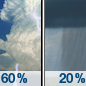 Temperature: 60°F Wind Speed: 9 mph Wind Direction: SE Forecast: Rain likely. Partly sunny, with a high near 60. Southeast wind around 9 mph. Chance of precipitation is 60%. New rainfall amounts less than a tenth of an inch possible. |