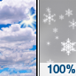 Temperature: 9°F Wind Speed: 5 to 10 mph Wind Direction: W Forecast: Snow before 11pm. Mostly cloudy, with a low around 9. West wind 5 to 10 mph. Chance of precipitation is 100%. New snow accumulation of less than one inch possible. |