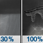 Temperature: 30°F Wind Speed: 15 to 20 mph Wind Direction: W Forecast: A chance of rain showers before 1am. Mostly cloudy, with a low around 30. Chance of precipitation is 30%. |