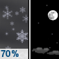 Temperature: 19°F Wind Speed: 5 mph Wind Direction: W Forecast: Rain and snow likely before 7pm. Mostly clear, with a low around 19. West wind around 5 mph. Chance of precipitation is 70%. New snow accumulation of less than half an inch possible. |