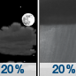 Temperature: 38°F Wind Speed: 2 to 8 mph Wind Direction: NW Forecast: Mostly clear, with a low around 38. Northwest wind 2 to 8 mph, with gusts as high as 16 mph. |