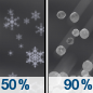 Temperature: 35°F Wind Speed: 6 to 10 mph Wind Direction: S Forecast: A chance of snow showers. Mostly cloudy, with a high near 35. |