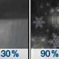 Temperature: 33°F Wind Speed: 10 mph Wind Direction: SE Forecast: A chance of rain showers between 9pm and midnight, then a chance of sleet and a chance of rain showers between midnight and 2am, then sleet and rain. Mostly cloudy, with a low around 33. Southeast wind around 10 mph. Chance of precipitation is 90%. New snow accumulation of less than half an inch possible. |