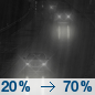 Temperature: 40°F Wind Speed: 3 to 8 mph Wind Direction: ENE Forecast: Rain likely after 11pm. Mostly cloudy, with a low around 40. |