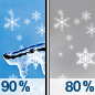 Temperature: 40°F Wind Speed: 10 to 15 mph Wind Direction: ENE Forecast: A chance of snow and a chance of freezing rain before 7am, then freezing rain likely and rain and snow likely. Cloudy, with a high near 40. Chance of precipitation is 70%. |