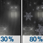 Temperature: 31°F Wind Speed: 10 mph Wind Direction: W Forecast: Rain showers likely. Mostly cloudy, with a low around 31. Chance of precipitation is 70%. |