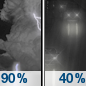 Temperature: 38°F Wind Speed: 2 to 6 mph Wind Direction: SE Forecast: Showers and thunderstorms before 8pm, then rain. Mostly cloudy, with a low around 38. Southeast wind 2 to 6 mph. Chance of precipitation is 90%. New rainfall amounts between a tenth and quarter of an inch possible. |