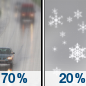 Temperature: 42°F Wind Speed: 15 to 25 mph Wind Direction: WSW Forecast: Rain likely before noon, then a slight chance of rain and snow. Mostly cloudy, with a high near 42. Chance of precipitation is 70%. |