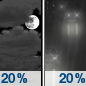 Temperature: 47°F Wind Speed: 7 to 13 mph Wind Direction: SW Forecast: A slight chance of rain after midnight. Mostly cloudy, with a low around 47. Southwest wind 7 to 13 mph. Chance of precipitation is 20%. |
