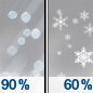 Temperature: 39°F Wind Speed: 10 mph Wind Direction: SW Forecast: Rain and snow likely. Mostly cloudy, with a low around 39. Southwest wind around 10 mph. Chance of precipitation is 70%. |