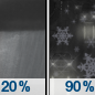 Temperature: 44°F Wind Speed: 5 mph Wind Direction: NW Forecast: A slight chance of snow showers after 5pm. Mostly sunny, with a high near 44. |
