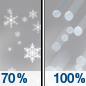 Temperature: 35°F Wind Speed: 3 mph Wind Direction: NE Forecast: A slight chance of snow. Mostly cloudy, with a high near 35. Northeast wind around 3 mph. Chance of precipitation is 20%. |